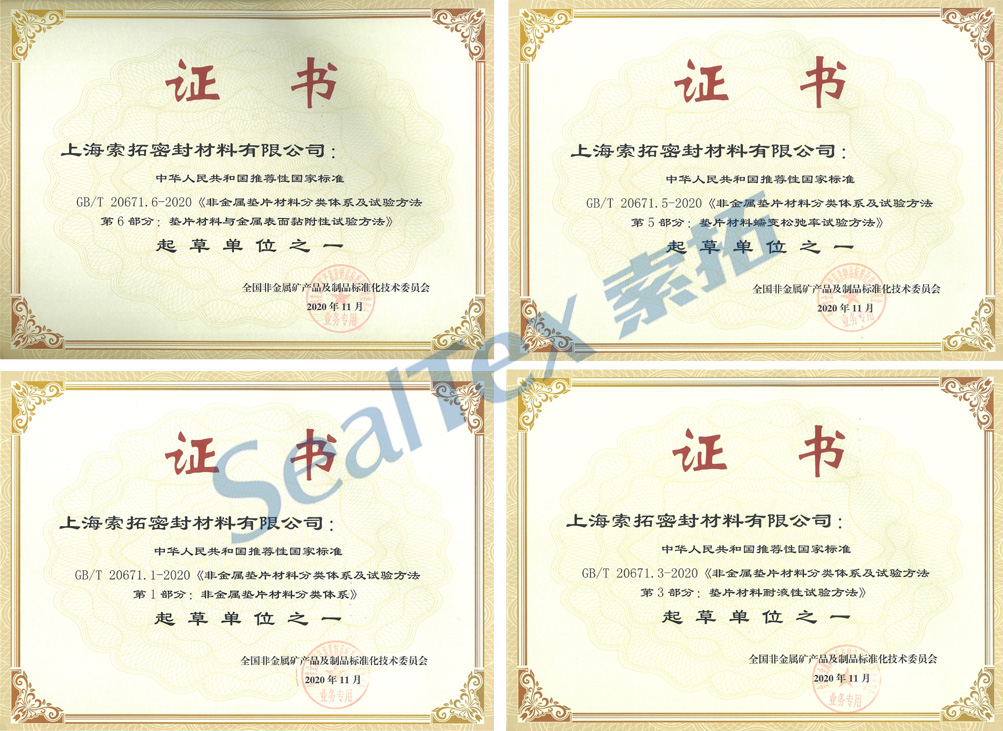 我司參與起草了GB/T 20671-2020《非金屬墊片材料分類體系及試驗(yàn)方法》中的多個(gè)部分。
