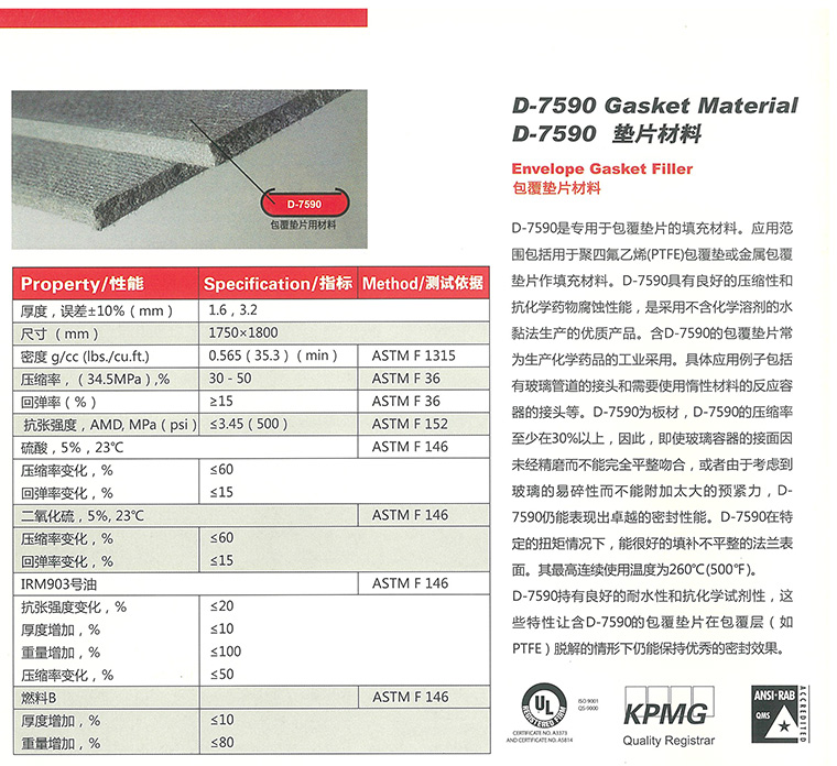 D-7590密封墊片滿足下列要求: