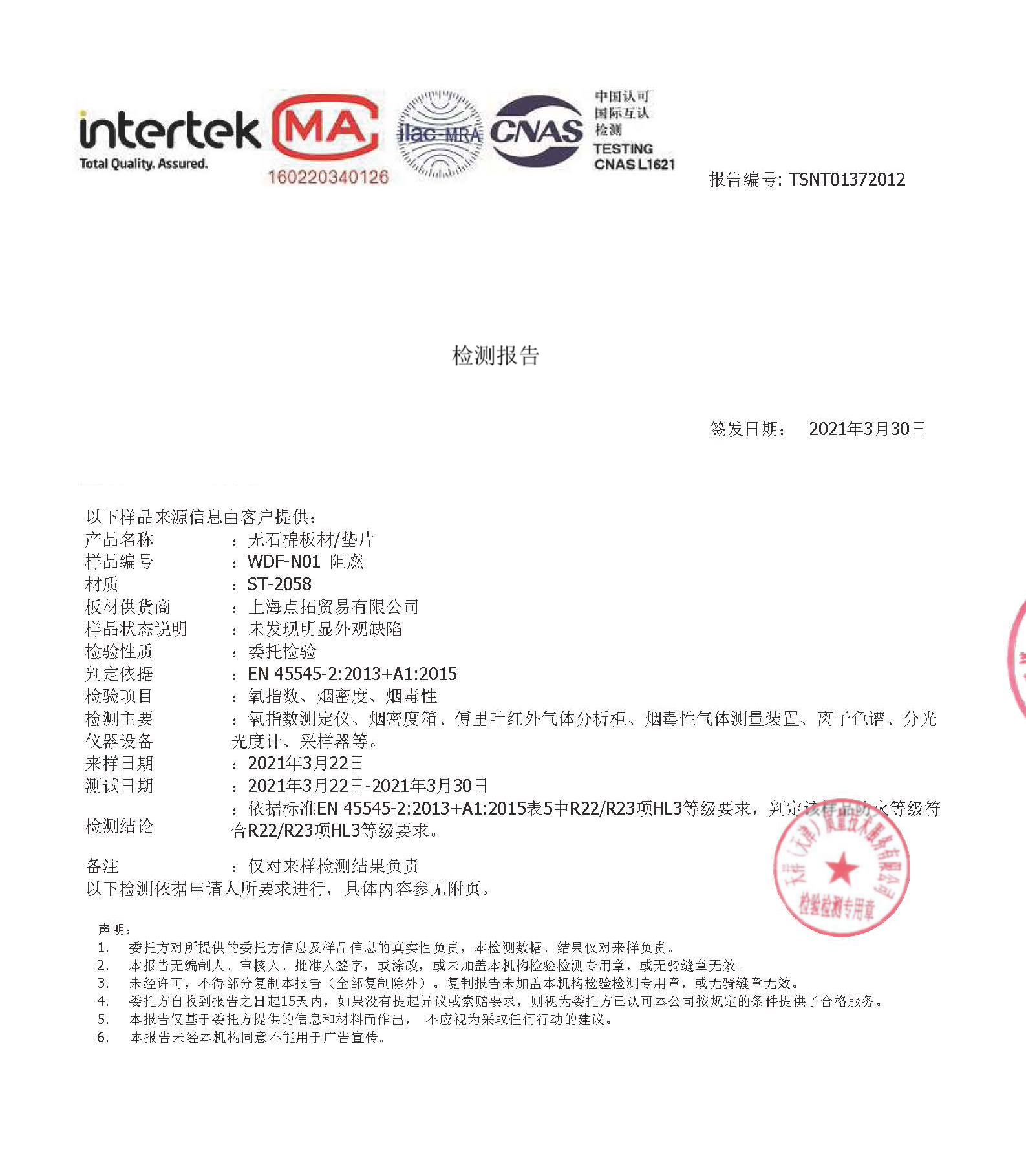 我司ST-2058無石棉板符合EN45545中HL3等級(jí)要求