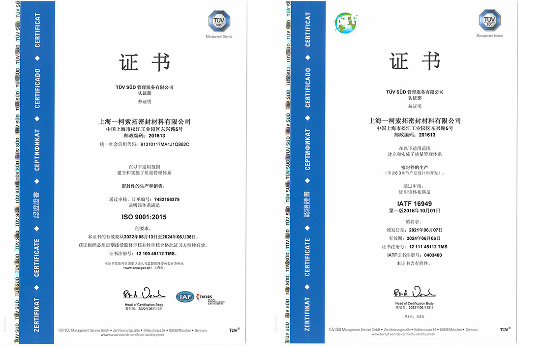 為了提升產品品質,加強企業(yè)市場競爭力。一柯索拓通過TUV復核,于2022年6月更新了ISO9001及IATF16949證書。