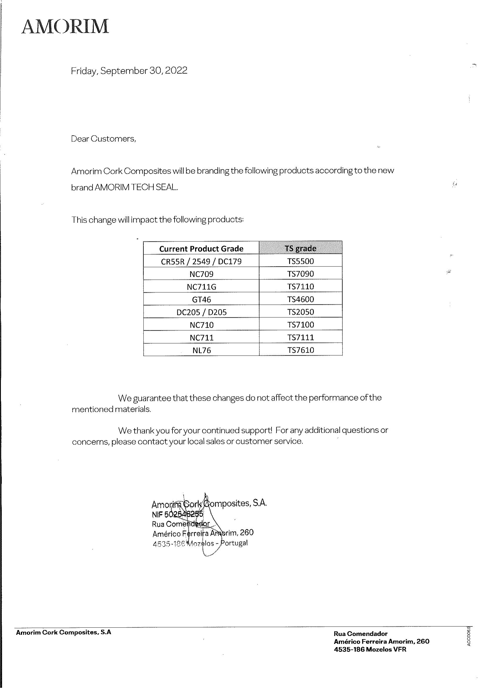 AMORIM ACC部分產(chǎn)品名稱更新