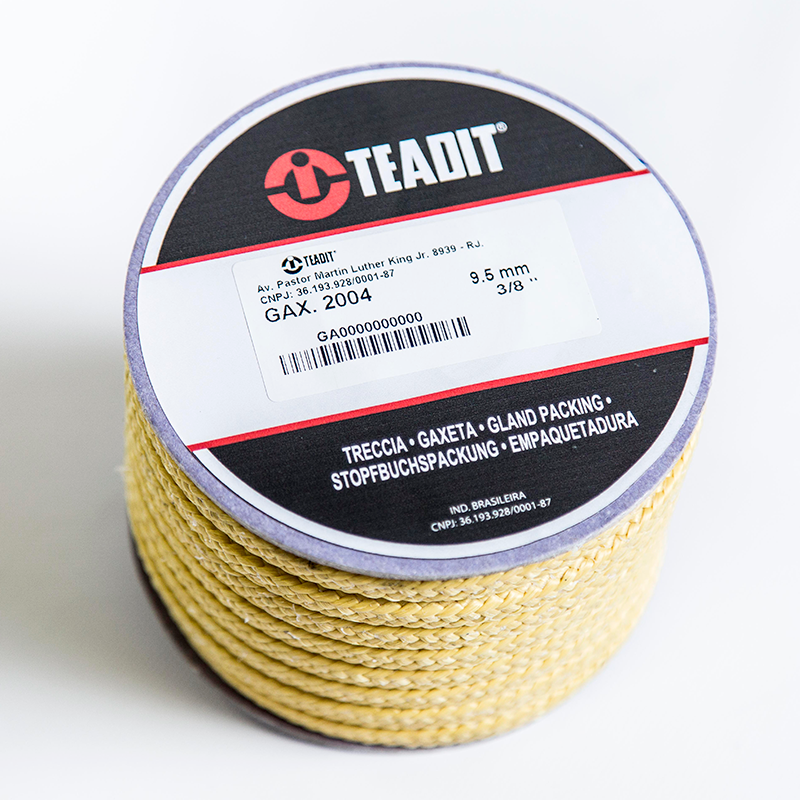 磨蝕性介質(zhì)芳綸或酚醛纖維等材料能提供理想的耐機(jī)械性能.TEADIT Style 2004 對角編織芳綸纖維浸漬PTFE和高溫硅油盤根。
