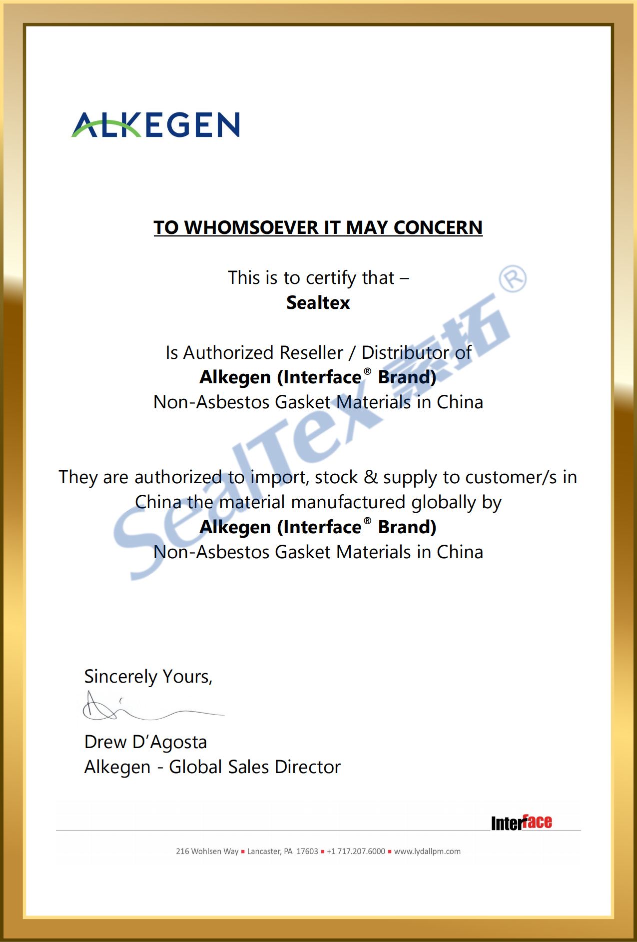 SealTex索拓為InteFace的授權(quán)合作伙伴