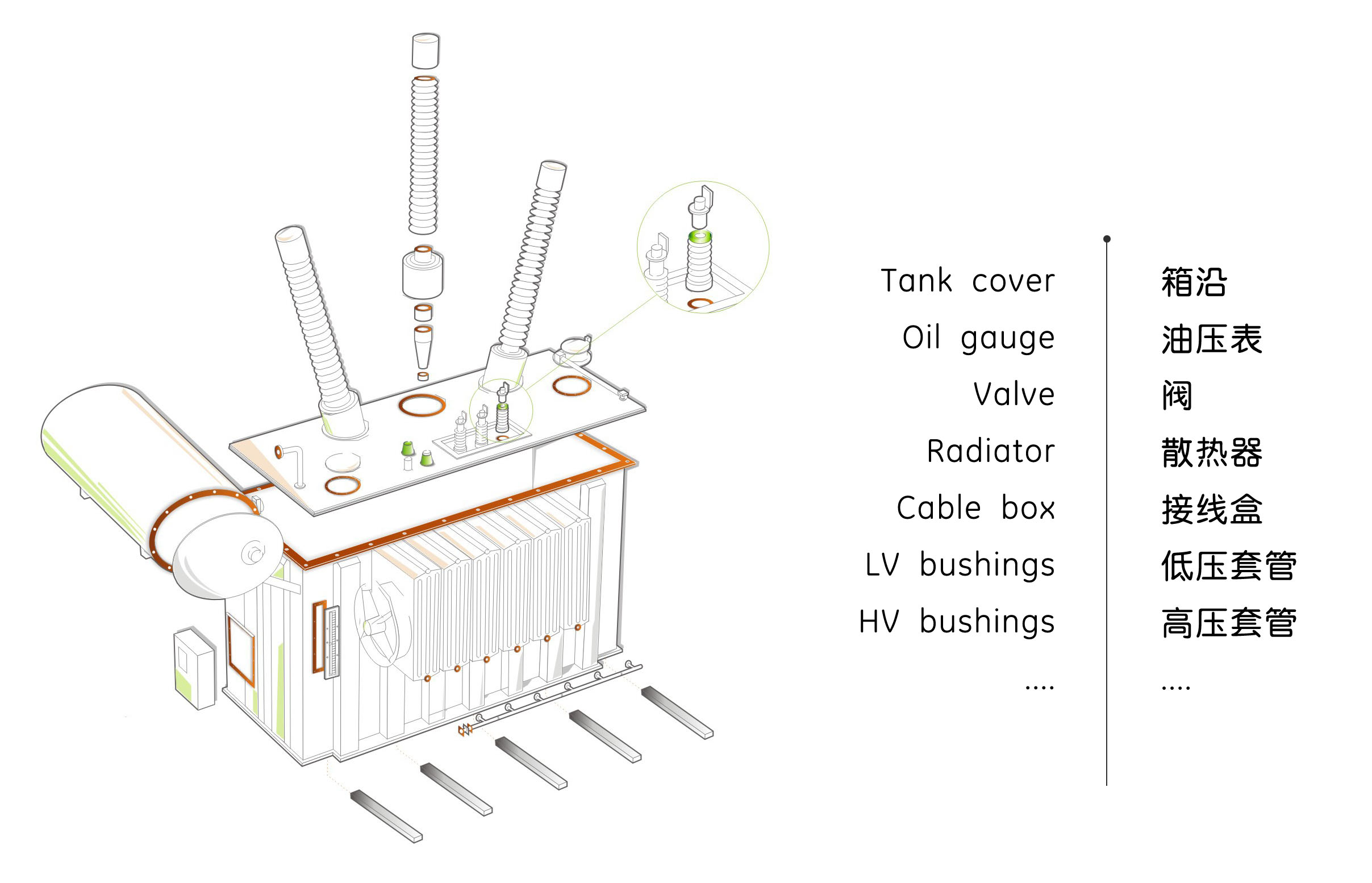 軟木密封墊廣泛應(yīng)用在變壓器中,在法蘭與蓋板之間形成可靠的密封。這些區(qū)域需要能夠承受機(jī)械應(yīng)力、熱膨脹以及耐變壓器油的材料。我們通過(guò)將軟木與橡膠結(jié)合提升了材料的柔韌性和耐受性,提供了一種可靠的解決方案,既能有效減少泄漏,又能長(zhǎng)期保持結(jié)構(gòu)完整性。